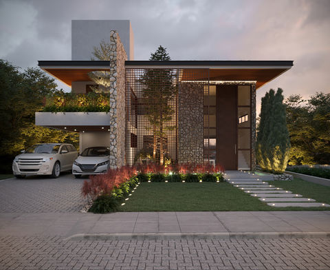 Residência com dois pavimentos, térreo e inferior, 316 m², sala de estar, sala de jantar, cozinha americana, despensa, 5 suítes, área gourmet com lavabo, dependência com WC de serviço, área de serviço com DML